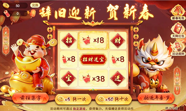 活动期间参与指定游戏、赠送魅力或充值获得活动币,消耗活动币可在新春转盘内获得“鞭炮”和“招财进宝”等道具。